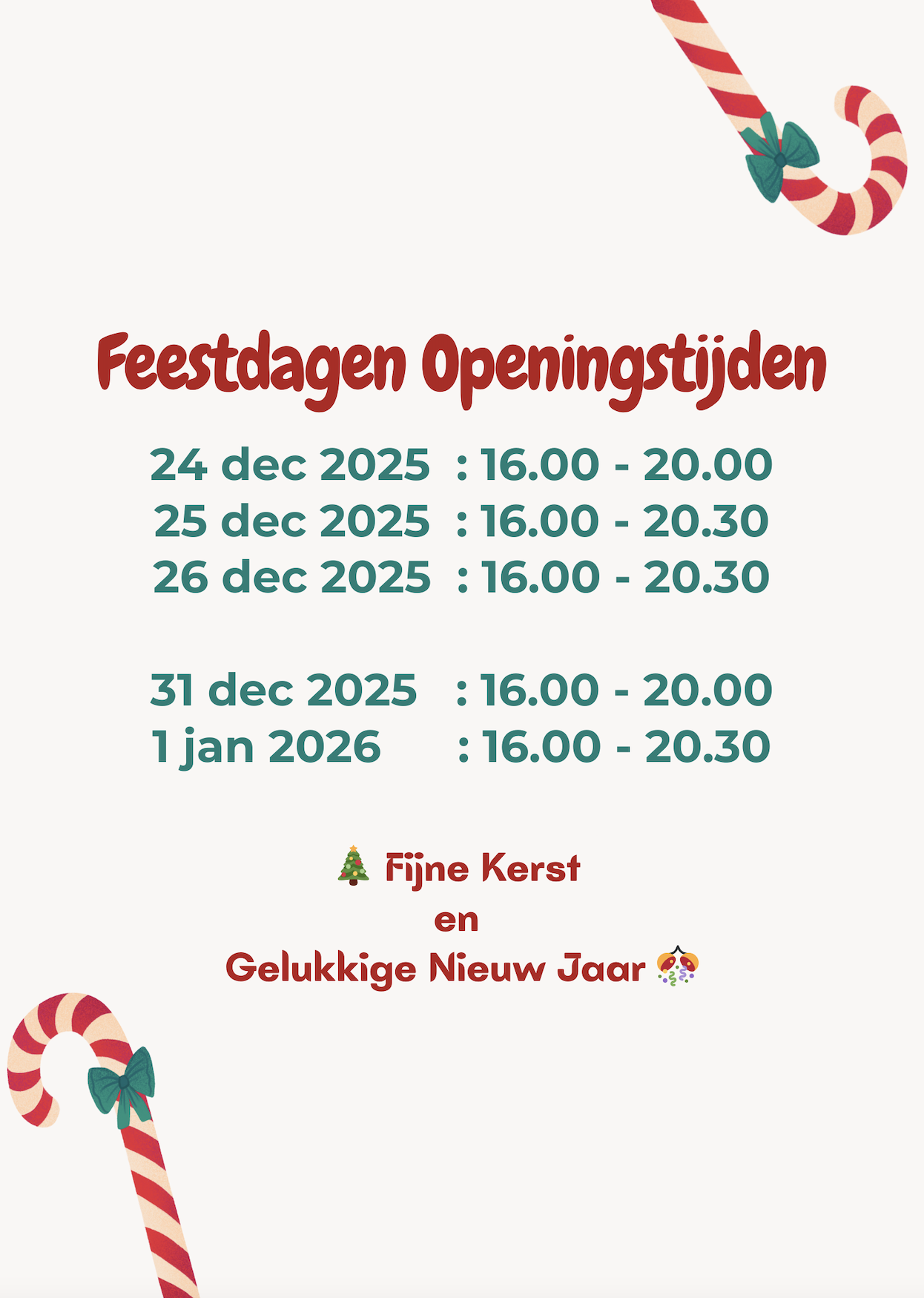 • Op feestdagen geldt ons weekendtarief m.u.v. de Kerstdagen.